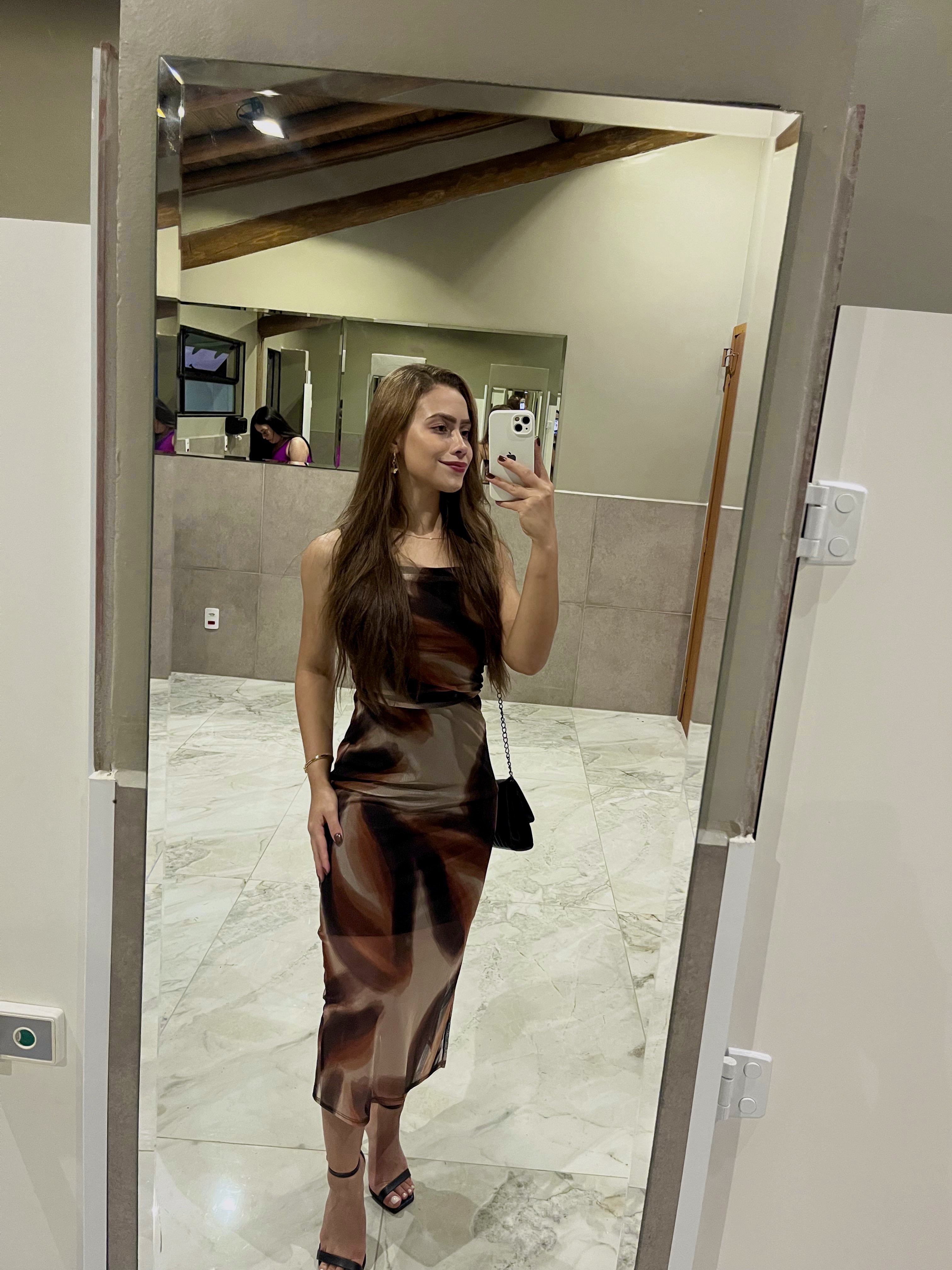 O Vestido Tule Marrom é uma peça delicada e sofisticada, perfeita para diversas ocasiões. Com um corte que favorece a silhueta, o vestido apresenta uma saia que se estende até a altura das panturrilhas, proporcionando um visual elegante e leve. Ideal para festas, dia a dia ou eventos ao ar livre.